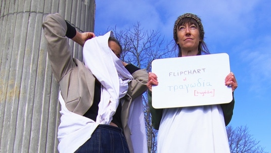 RéserverDans une volonté de faire circuler la culture, la confédération a formé et mandaté certains de ses collaborateurs et collaboratrices les plus prometteurs à la « sensibilisation culturelle ». C’est ainsi qu’Angustia du service juridique et Bernie de l’économat, se retrouvent, armées d’un flipchart, de marqueurs quadricolores et d’un abonnement demi-tarif, à parcourir la Romandie. Leur mission : rendre la tragédie grecque compréhensible !